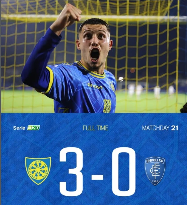 Carrarese tampil luar biasa saat menjamu Empoli dan sukses meraih kemenangan meyakinkan dengan skor telak 3-0. Bermain penuh percaya diri di hadapan pendukung sendiri, Carrarese menunjukkan permainan agresif dan disiplin yang membuat Empoli kesulitan mengembangkan permainan sepanjang laga.
