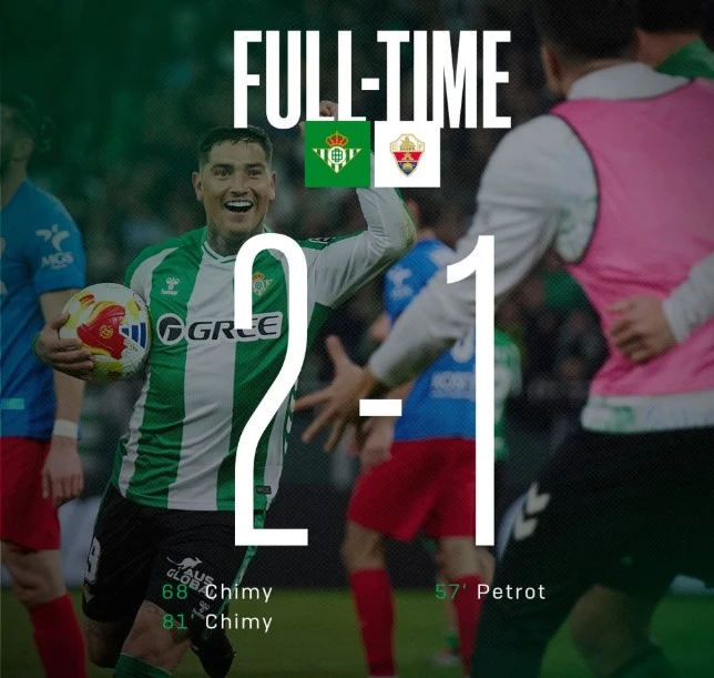 Hingga peluit panjang dibunyikan, skor 2-1 tetap bertahan untuk kemenangan Real Betis. Hasil ini menjadi modal penting bagi Betis untuk terus bersaing di papan atas klasemen La Liga. Sementara bagi Elche, kekalahan ini menjadi bahan evaluasi untuk memperbaiki konsistensi permainan di laga-laga berikutnya.